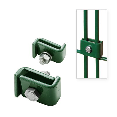 kovová spojka typ "L" na 2D a 3D svařované panely • materiál - kov • povrchová úprava: Zn+PVC • barva RAL6005 • balení obsahuje dva protikusy, šroub, matici a podložku